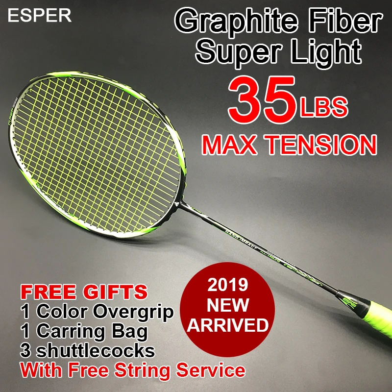Producto relacionado para badminton y ESPER raqueta de bádminton raqueta ligera de alta calidad de fibra de Max tensión 35LBS profesional con cuerda y regalos