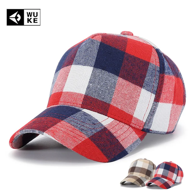 Comprar WUKE gorra a cuadros Casual gorra de béisbol hombres mujeres huesos rojos Hip Hop Casquette Homme Gorras Para Hombre Beisbol ajustable Mezquino